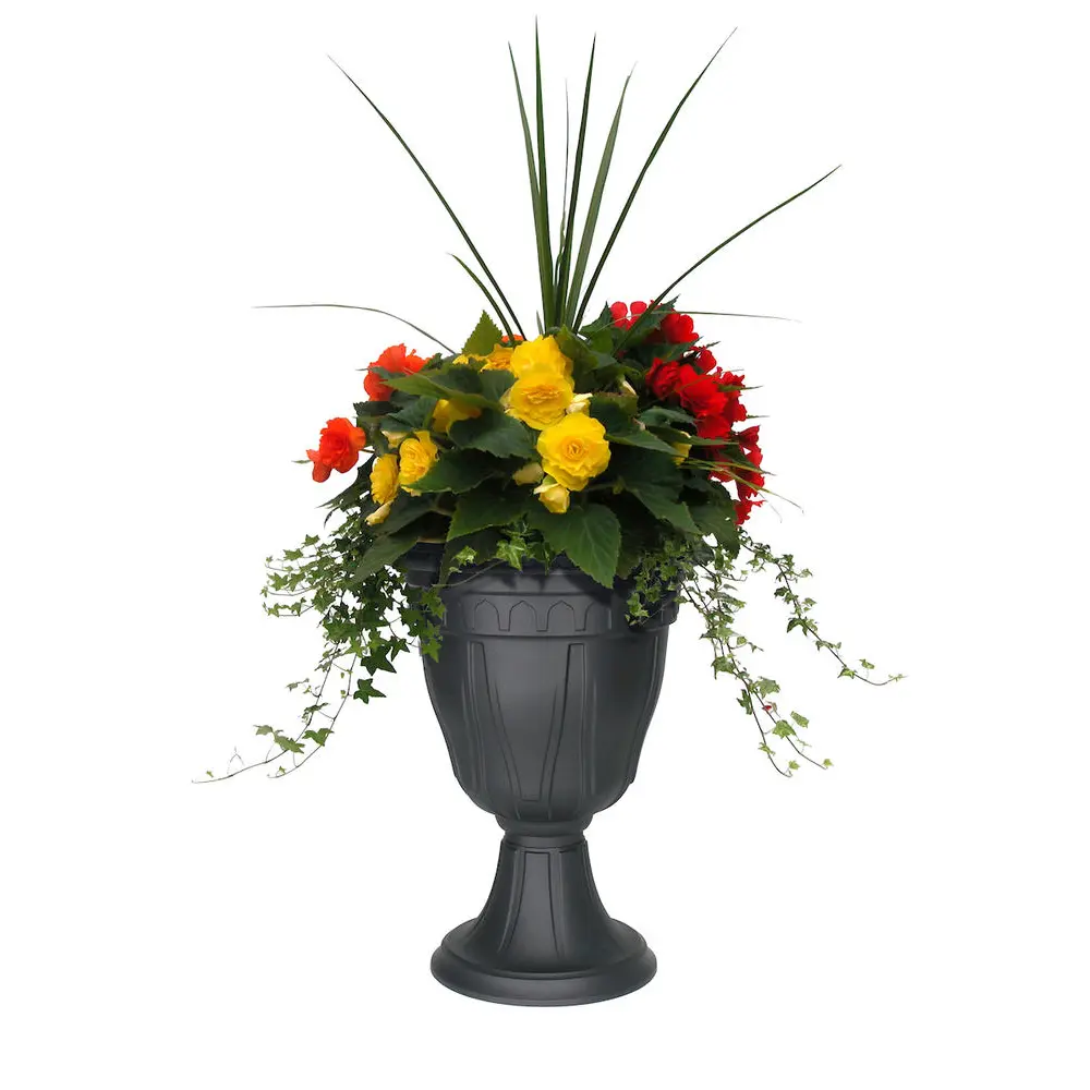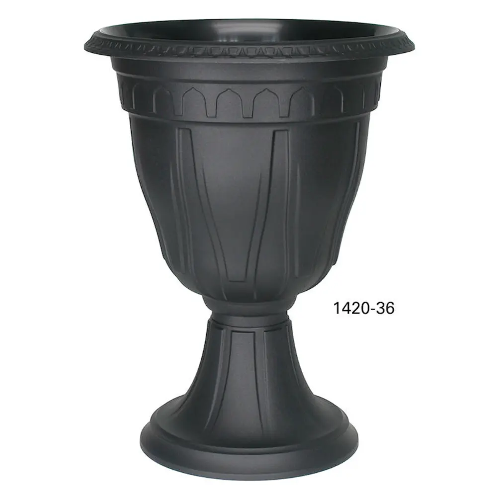 Azura Tall Urn with Textured Finish and punch out points for drainage. Made in Canada with recyclable and non-toxic thermoplastic, U.V. protected. DCN products are available for fall booking, inventory is restocked once yearly.