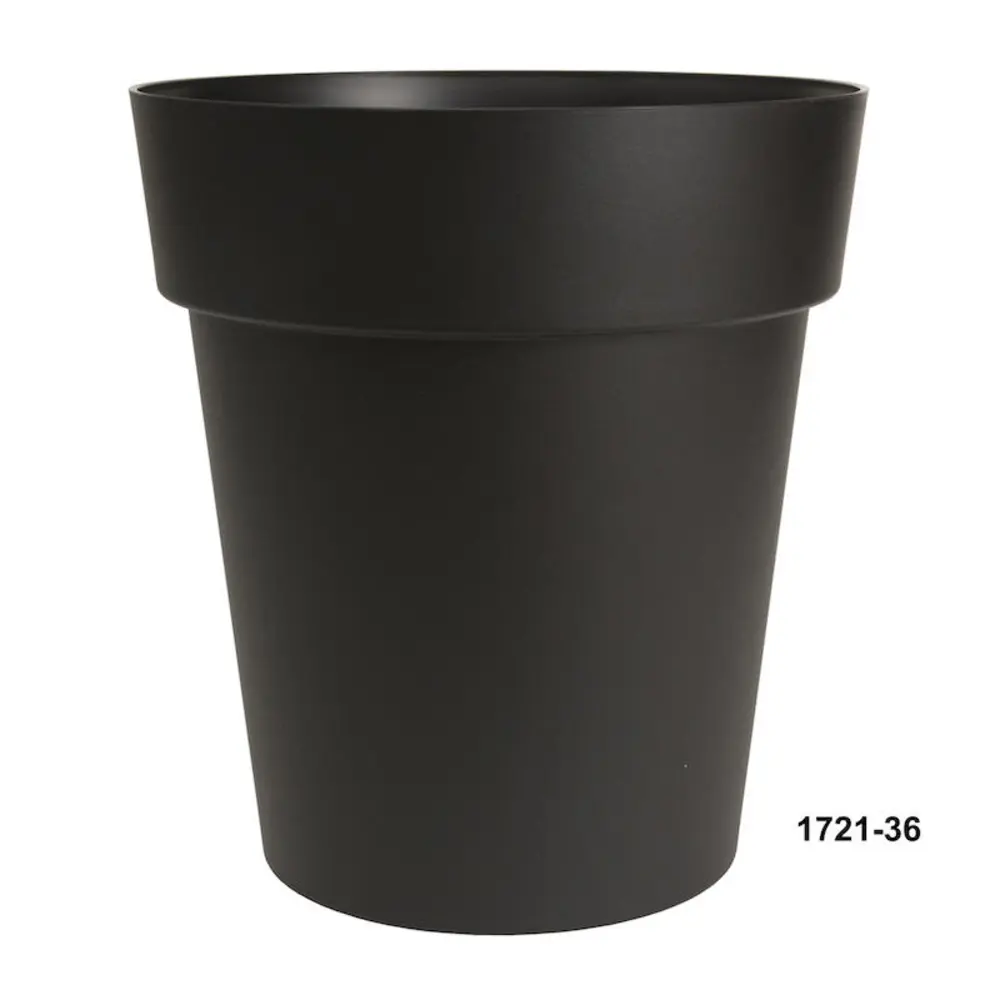 Viva self-watering round planter. Contemporary design with a matte textured finish, large water reservoir and overflow protection. Made in Canada with recyclable and non-toxic thermoplastic, U.V. protected. DCN products are available for fall booking, inventory is restocked once yearly.
