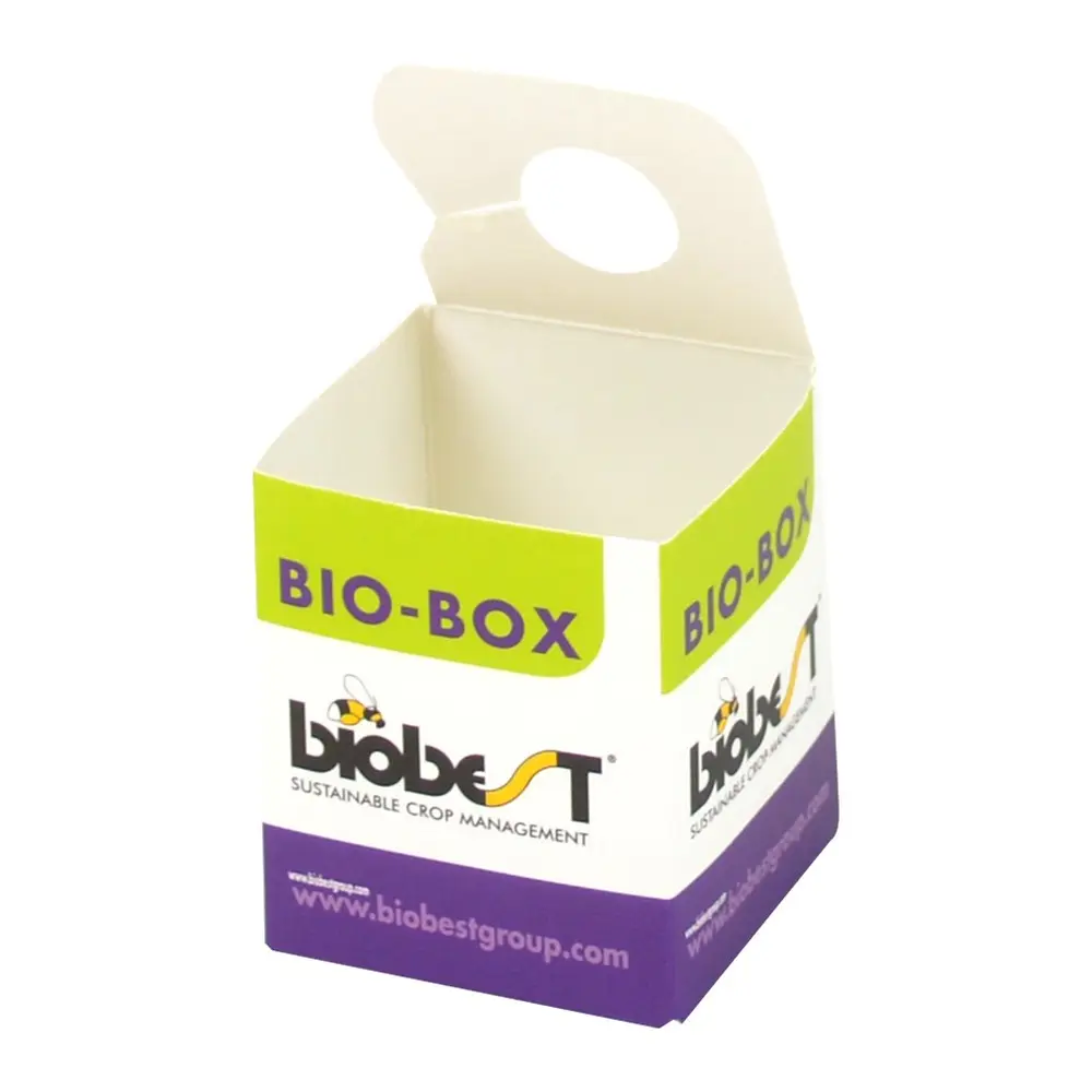 Small cardboard box that can be hung up easily in your crop. Useful tool introducing the predatory bugs Macrolophus and Orius, mummies of aphid parasites like Aphidius and pupae of whitefly parasites such as Encarsia. 50 boxes per package. Biobest is ordered weekly, and may involve additional shipping charges. Weekly order deadline is Tuesday afternoon, orders are shipped from Saint John the following Tuesday. Shipping typically takes 1-2 days and may be longer for remote locations. Deadline is subject to change on weeks with holidays. Talk to your sales rep for more information.