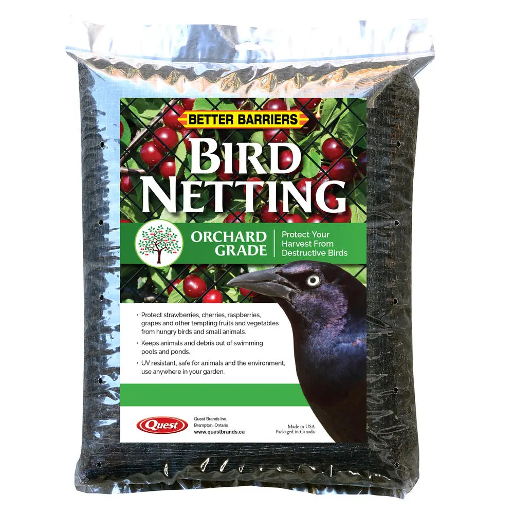 Tough UV resistant black polypropylene netting to protect berries, fruits and vegetables from birds and animals. Can also be used to keep animals and debris out of ponds and pools. Available in a range of sizes. Quest is ordered twice a year, in summer and fall.