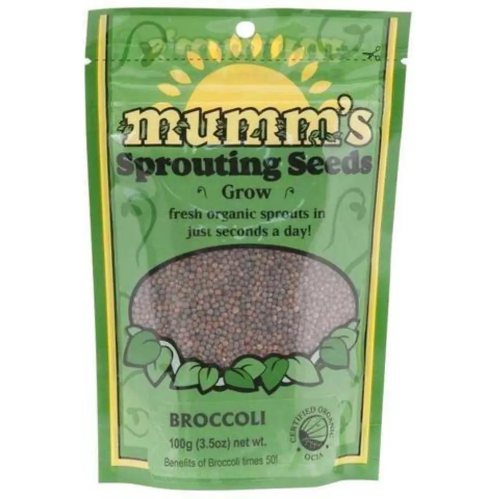 Can be grown in water for sprouts, or soil for microgreens. Rich in vitamins K, C, B6, and E, folate, dietary fiber phosphorus, potassium, and magnesium. Broccoli sprouts contain high levels of the cellular detoxifier sulforaphane, which may help to preve Mumm's Sprouting Seeds are available for fall booking. Inventory is restocked once yearly, with potential for reordering throughout the year.