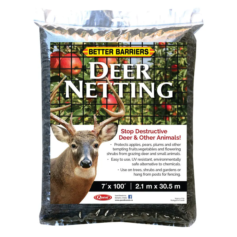 Deer D-Fence protects fruits and vegetables from deer. Heavy duty and strong, but will not harm the deer. 3/4 x 1-1/2" (2 x 4 cm) black poly mesh. Quest is ordered twice a year, in summer and fall.