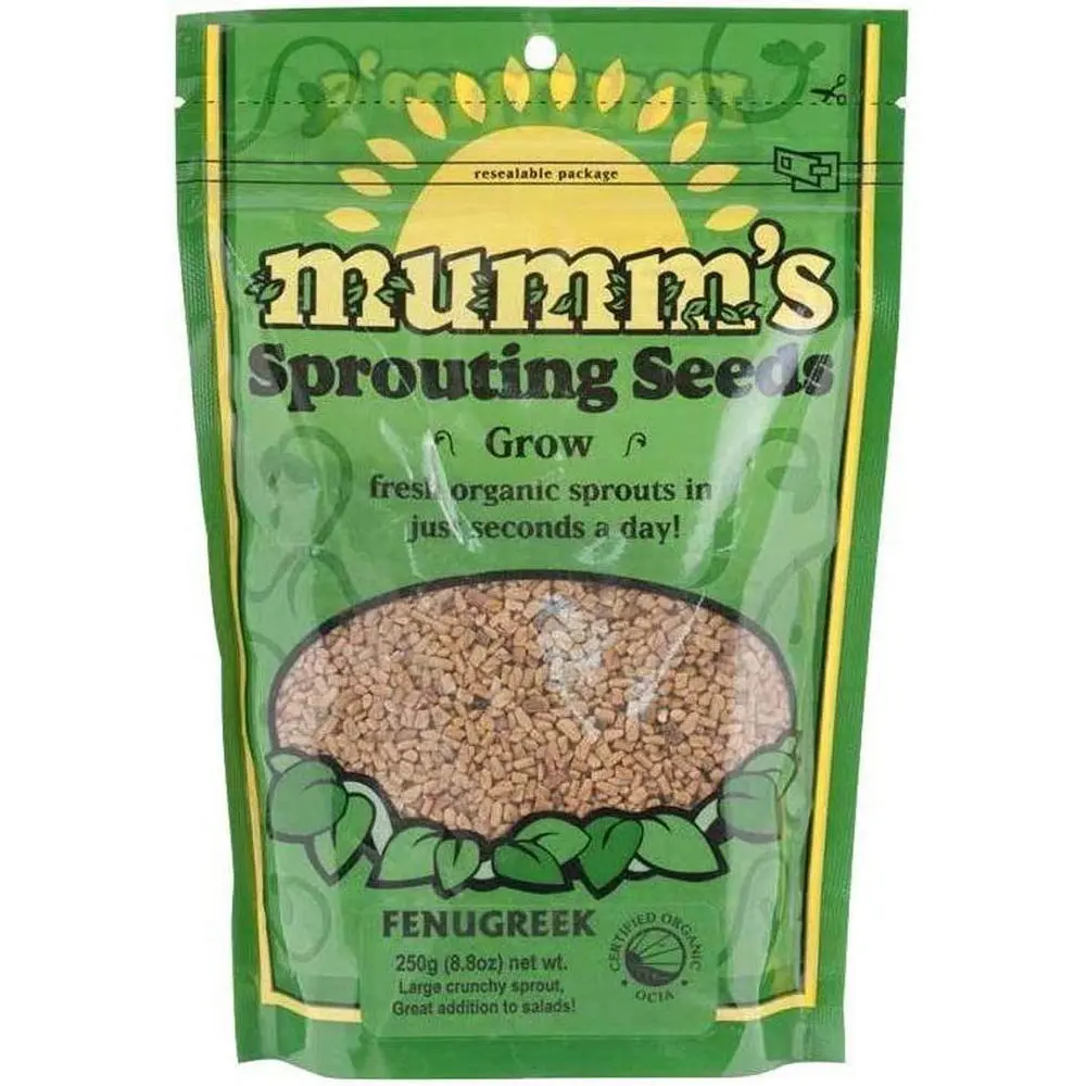 Large vigorous sprouts with a unique flavour. Can also be grown as a microgreen. Fenugreek is a traditional herb for colds and flu. Contains vitamins B6 and C, calcium, iron, magnesium, phosphorus, potassium, and zinc. Mumm's Sprouting Seeds are available for fall booking. Inventory is restocked once yearly, with potential for reordering throughout the year.