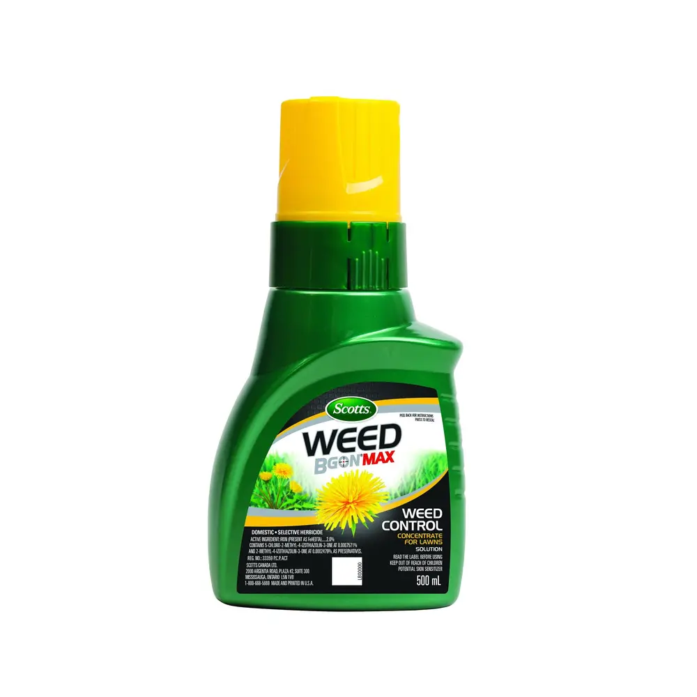 Stop tugging, pulling, and digging dandelion, white clover, and other lawn weeds. Instead, use Scotts Weed B Gon MAX Weed Control Concentrate for Lawns. It’s formulated with chelated iron so it kills weeds, not lawns for easy and effective spot treatment. Just follow label directions and spray. You’ll start seeing it work within several hours of application with susceptible weeds turning brown or black. For best results, spray unwanted weeds until thoroughly wetted.