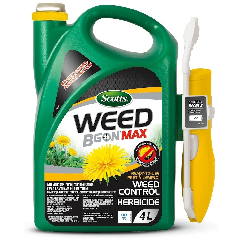 Stop tugging, pulling, and digging dandelion, white clover, and other lawn weeds. Instead, use Scotts Weed B Gon MAX 4L Ready-to-Use Weed Control with Wand Applicator. It’s formulated with chelated iron so it kills weeds, not lawns for easy and effective spot treatment. Just follow label directions and spray. You’ll start seeing it work within several hours of application with susceptible weeds turning brown or black. For best results, spray unwanted weeds until thoroughly wetted.