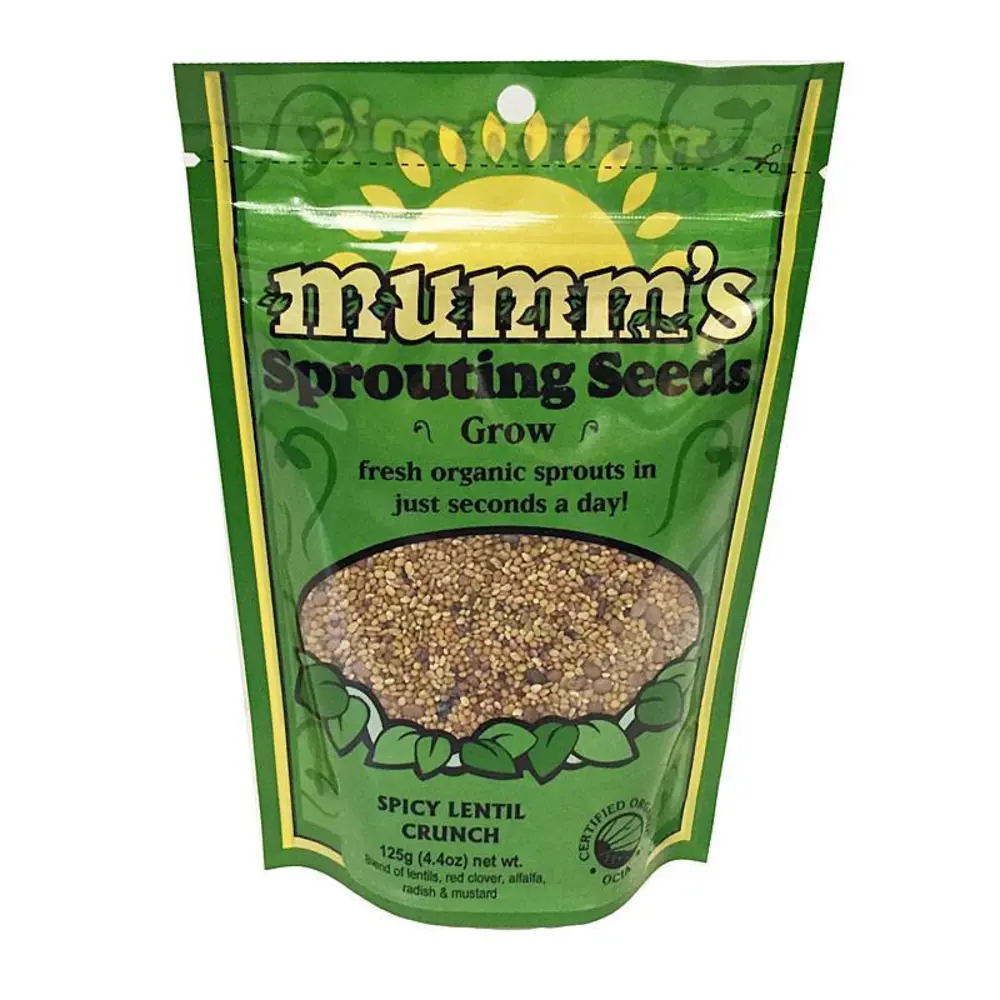 An easy 5-day sprout. A spicy mix of lentils, radish, alfalfa, red clover, mustard. Mumm's Sprouting Seeds are available for fall booking. Inventory is restocked once yearly, with potential for reordering throughout the year.