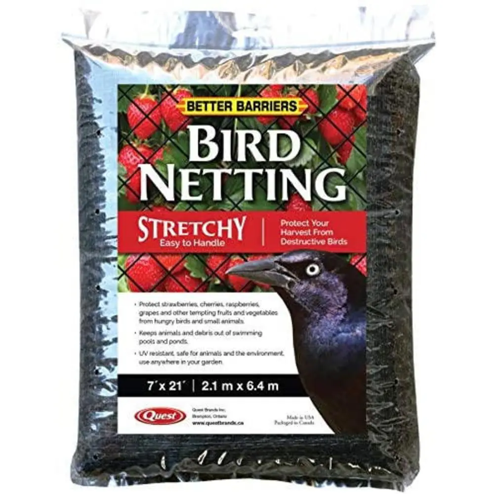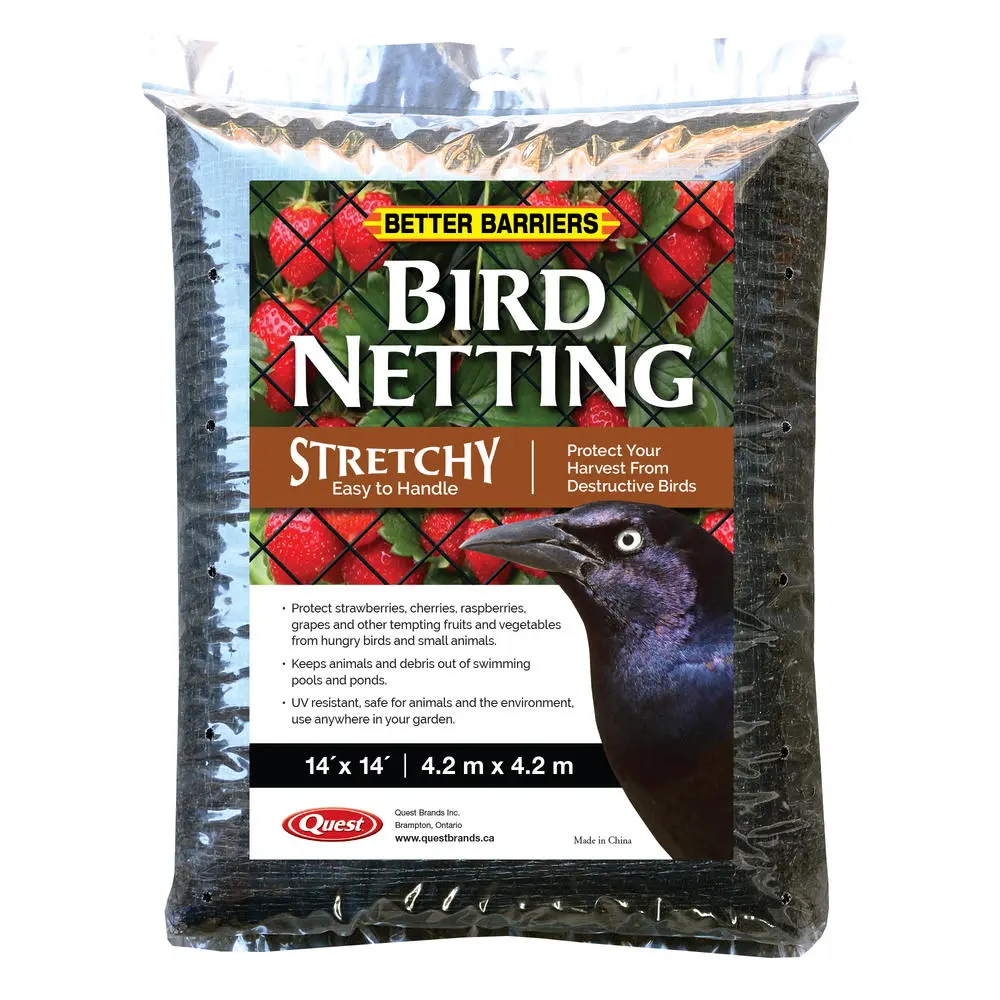 Tough UV resistant black polypropylene netting to protect berries, fruits and vegetables from birds and animals. Can also be used to keep animals and debris out of ponds and pools. Stretches for easier application than traditional netting. Quest is ordered twice a year, in summer and fall.
