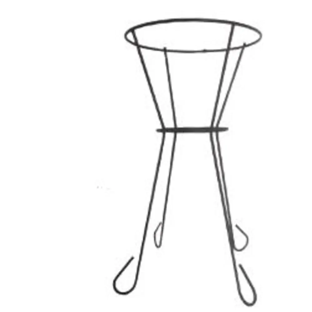 Decorative, sturdy support for baskets up to 11" in diameter. Top ring 11" diameter, middle ring 6" diameter. 21 1/4" tall