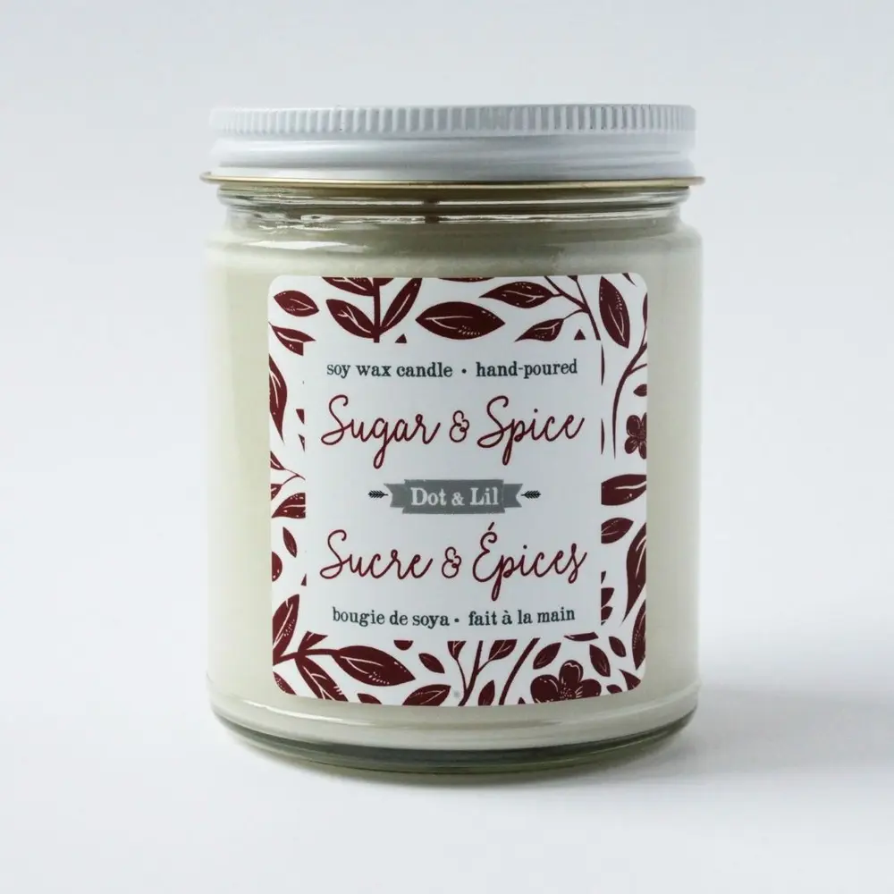Dot & Lil?s finely hand-poured candles are made with a wax blend of 100% pure soy & botanical oils, with a cotton wick. Each candle is hand-poured in a glass jar with white metal lid, and comes with beautiful patterned box. This 7.2 oz size burns for approximately 45 hours.
