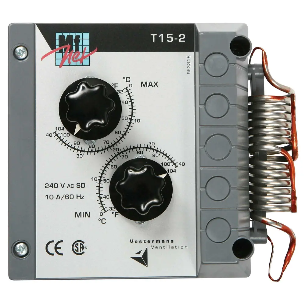 Designed for use on new and existing ventilation systems, the T15-2 Thermostat is ideal for fans, heaters, and other electrical devices that need to be automatically controlled. The thermostat is recommended for heater and fan combinations or two speed fan applications. Water and dust resistant, the thermostat comes completely assembled and ready to install.