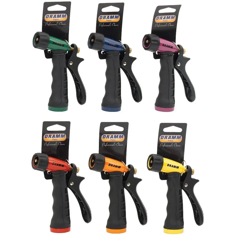 This variable spray gun is a great tool for cleaning decks, sidewalks, cars, and more. Simply squeeze lever for a variety of spray patterns from fine mist to a stream. Available in six vibrant colors: red, orange, yellow, green, blue and berry. Dramm products are available for fall booking, inventory restocked once yearly.