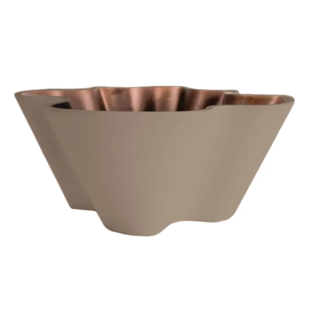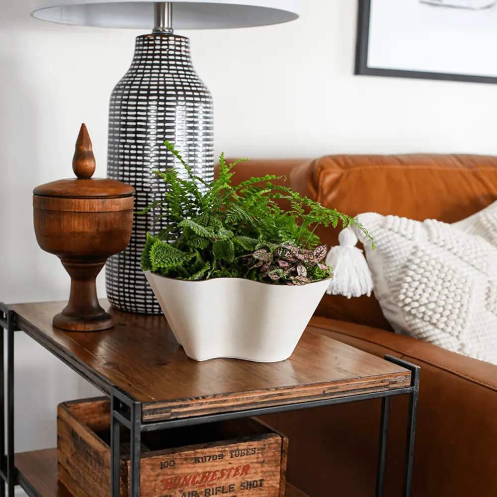 Premium plastic two-toned bowl with painted exterior and metalic plastic interior. Removable plug for optimal plant care. Perfect for single or multiple plantings. Available in 2 sizes: 6" or 8".